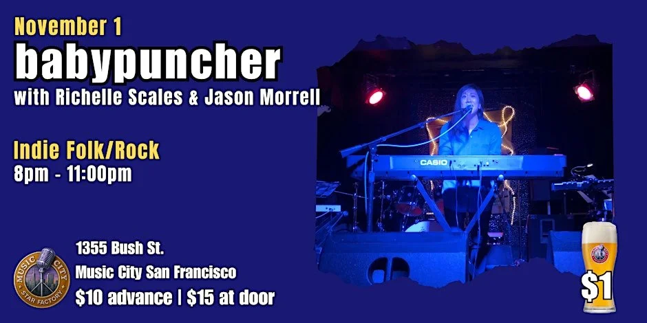 Nov 1 @ Music City San Francisco, with sets from Jason Morrell and Richelle Scales! Tickets in advance $10, at the door $15. Buy tickets here!! Let’s get sad.